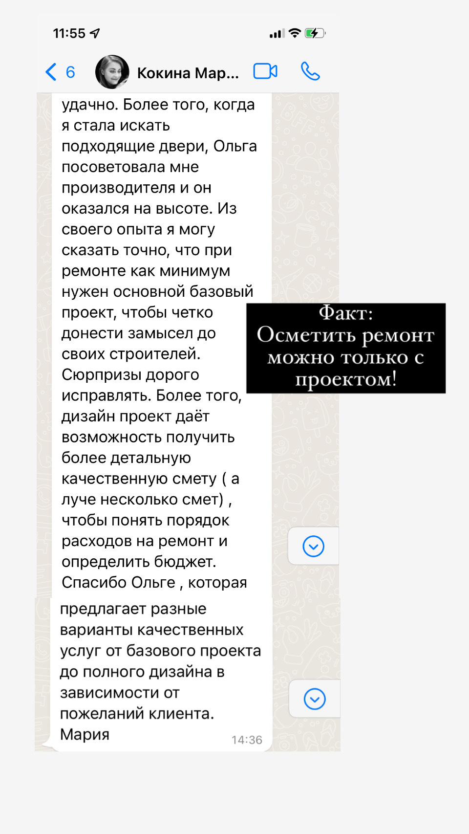 ✦ Вы высылаете мне фото подборку интерьеров которые Вам нравится, я выбираю то что сочетается между собой, подбираю по Вашему бюджету нужные отделочные материалы. Приглашаю Вас в офис на обсуждение и утверждение. Это входит в проекты